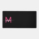 Hot Pink Black Modern Script Girly Monogram Name Desk Mat
