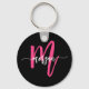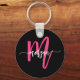Hot Pink Black Modern Script Girly Monogram Name Key Ring