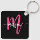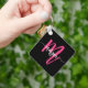 Hot Pink Black Modern Script Girly Monogram Name Key Ring