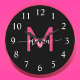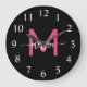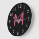 Hot Pink Black Modern Script Girly Monogram Name Large Clock