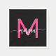Hot Pink Black Modern Script Girly Monogram Name Napkin