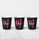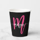 Hot Pink Black Modern Script Girly Monogram Name Paper Cups