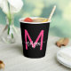 Hot Pink Black Modern Script Girly Monogram Name Paper Cups