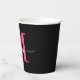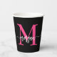 Hot Pink Black Modern Script Girly Monogram Name Paper Cups