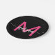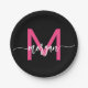 Hot Pink Black Modern Script Girly Monogram Name Paper Plate
