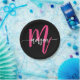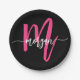 Hot Pink Black Modern Script Girly Monogram Name Paper Plate