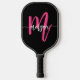 Hot Pink Black Modern Script Girly Monogram Name Pickleball Paddle