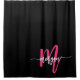 Hot Pink Black Modern Script Girly Monogram Name Shower Curtain