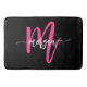 Hot Pink Black Monogram Girl's Dorm Room Bath Mat
