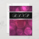 Hot pink & black bubbles postcard RSVP. Customise for your party or event. Add your details to the front and/or back by simply choosing the orange "Customise it!" button to begin adding your event details, font style, font size & colour, and wording. Please note - all of the invitation designs you will find on Zazzle are printed graphics on flat paper stock with no actual jewels, bows, raised, embossed, or added parts or pieces.