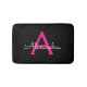 Hot Pink Black Script Girly Monogram Name Bath Mat