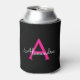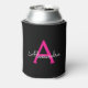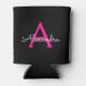 Hot Pink Black Script Girly Monogram Name Can Cooler