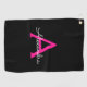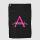 Hot Pink Black Script Girly Monogram Name Golf Towel