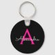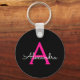 Hot Pink Black Script Girly Monogram Name Key Ring
