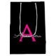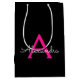 Hot Pink Black Script Girly Monogram Name Medium Gift Bag