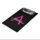Hot Pink Black Script Girly Monogram Name Mini Clipboard