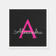 Black and Hot Pink Monogram Add Your own Name Paper Party Napkins. This makes the perfect sweet 16 birthday, wedding, bridal shower, anniversary, baby shower or bachelorette party gift for someone that loves glam luxury and chic script styles.