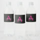 Hot Pink Black Script Girly Monogram Name Water Bottle Label