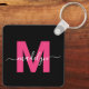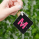 Create Your Own Stylish Modern Custom Black and Pink Monogram Square Keychain.