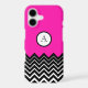 Hot Pink Black White Chevron Zigzag Monogram
