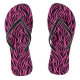 Black flip flops with a pattern of hot pink and black zebra stripes, these are perfect to dress up your outfit for any occasion.
