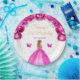 This elegant and glamourous birthday party plate features a beautiful princess with blonde hair in a hot pink ball gown. The text combines handwritten script and modern sans serif fonts for a classy and sophisticated look. The floral arrangements, butterfly and gold confetti create the perfect blend of rustic and chic.
