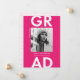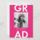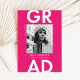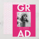 Announce your graduation in style with our modern photo graduation announcements! The trendy graduation announcements display your graduate's photo with "Grad" in bold white lettering against a solid hot pink background. Personalize the front of the hot pink graduation announcements by adding the graduate's name, school name, and graduation year. The announcement reverses to display a hot pink geometric pattern with a white background.