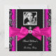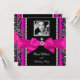 Hot Pink Bow Birthday Party Silver Photo Invitation