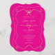 Make a bold statement with this chic hot pink wedding invitation featuring an elegant white ribbon illustration framing your text. The stylish bracket-cut shape adds flair and sophistication, while the script and serif fonts keep the layout modern yet romantic. This vibrant design is perfect for couples planning a fashionable celebration, from glam soirées to playful summer weddings. Fully customisable to match your personal style and wedding details.