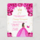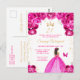 Hot Pink Brunette Hair Princess Birthday Party Postcard