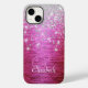 Hot Pink Brushed Metal Silver Glitter Monogram Case-Mate iPhone Case