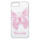 A hot pink butterfly in a fancy filigree design accents your name on this iPhone 7 case, making it the perfect girly accessory.