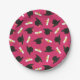 Hot Pink Cap Diplomas Pattern Graduation Party Paper Plate