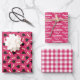 Wrap gifts for the graduate in different but matching wrapping papers, all with hot pink as their base color. One with graduation caps and diplomas. One with Congratulations, class of the Year, and one with a printed gingham pattern.
