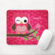 Hot Pink Cute Owl Girly Mouse Mat