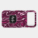 Monogram Personalize with your custom initial and name. Hot pink, plum purple and white damascus abstract design marble liquified swirl and dots pattern.