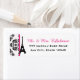 ADD YOUR NAME TO THESE CHIC AND PRETTY PARISIAN AND FRENCH THEMED RETURN ADDRESS LABELS WITH AN EIFFEL TOWER ON AN ELEGANT BLACK AND WHITE DAMASK FLORAL BACKGROUND AND A PRINTED RIBBON LOOK DESIGN IN A HOT PINK FUCHSIA HUE. DESIGNED BY CHRISSY H. STUDIOS, LLC. ALL RIGHTS RESERVED.
