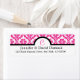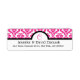 Hot Pink Damask with white background lined with C black border. Hot Pink Monogram on white background. Wedded couples name in black on a white background with black return mailing address text. This makes a perfect coordinated label to any damask wedding RSVP or invitation. Place these return address labels on the back of your wedding invitation envelopes or on the front left side of any envelope. Save yourself from hand writing your return address on all out going mail.