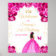 Hot Pink Dark Skin Princess Birthday Welcome Poster