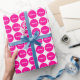 A wrapping paper designed with a hot pink dot pattern on a white background and name. Customise the wrapping paper with your special name or text among other options.