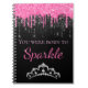 Hot Pink Dripping Faux Glitter Born to Sparkle Notebook