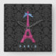 Hot Pink Eiffel Tower in faux glitter Square Wall Clock