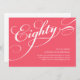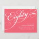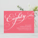 This elegant 80th birthday invitation has a hot pink and white modern design, and is fully customisable. A great invite for a formal or casual party.