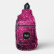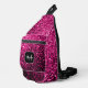 Hot pink faux glitter sparkles Custom Monogram Sling Bag. Cool fashion accessory bag for her. Beautiful girly glamourous shiny glitters sparkles design. Create a unique and personalised bag with a custom touch! Modern monogram with your initial and your name for that extra personal flair. We use Photo of sparkles, not real glitter!