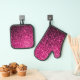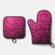 Hot pink faux glitter sparkles oven mitt & pot holder set