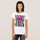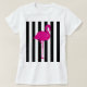 Hot Pink Flamingo on Black and White Stripe T-Shirt