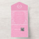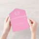 Experience the charm of a sophisticated bohemian wedding with this elegant all-in-one invitation. Adorned with a vibrant hot pink and white floral wreath pattern, it includes the bride and groom's monogram on the top. This convenient all-in-one card also incorporates an RSVP response card for a seamless and comfortable invitation experience.