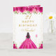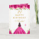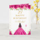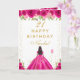 Hot Pink Floral Dark Skin Girl Birthday Card