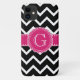 Hot Pink Flower Monogram Black Chevron Case-Mate iPhone Case