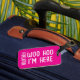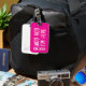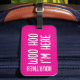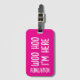 Funny Modern personalised luggage tag for your holiday travel bag with this bright and bold luggage tag and your name. You can change the colour of the background by clicking on the customise it button. Its showcases the words "woo hoo I'm here" to celebrate your family vacation or any party celebration. You can get them for your bachelorette party, or just to recognise your suitcase with a funny travel accessory.
